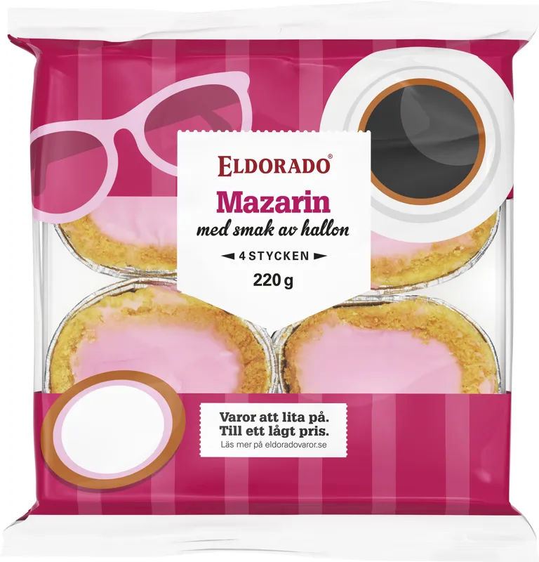 Mazariner med smak av hallon. Gott till fikat! 4 stycken.