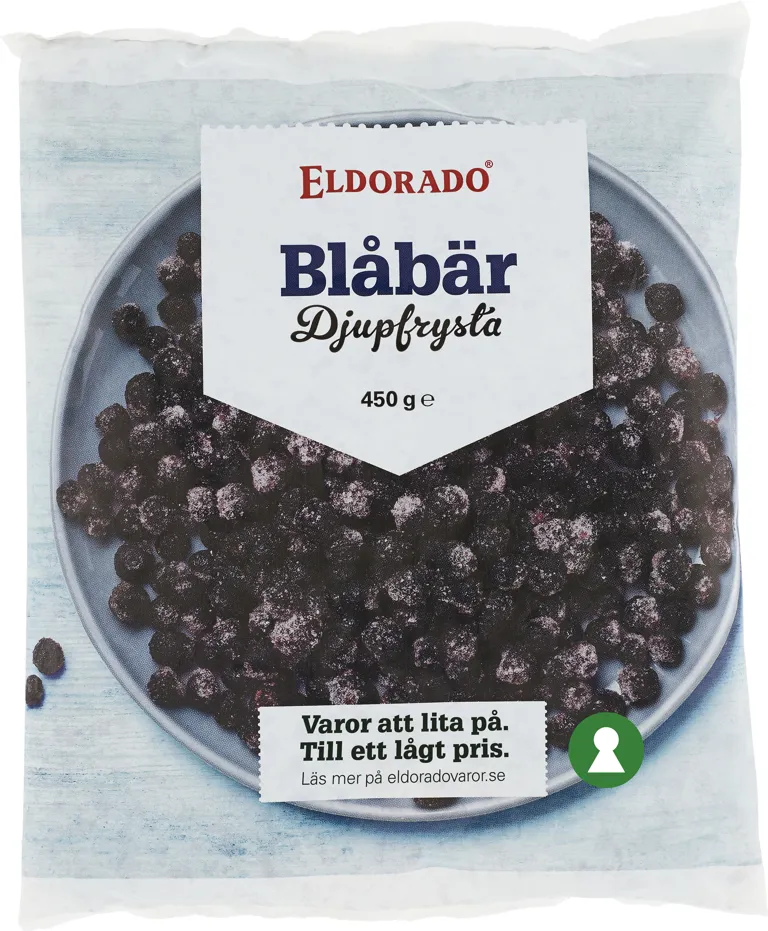 Djupfrysta blåbär. Smidigt att ha i frysen och plocka fram för att göra en smoothie, toppa yoghurten med eller ha i bakverket. 450 gram.