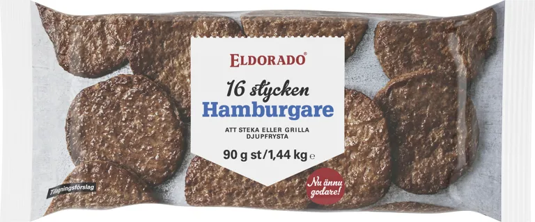 Djupfrysta hamburgare. Perfekta att steka eller grilla. 16 stycken.