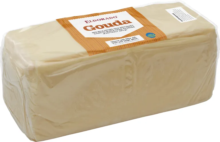 Goudaost i bit gjord på mjölk från Sverige. Fetthalt 28%. Ca 2,2 kg.