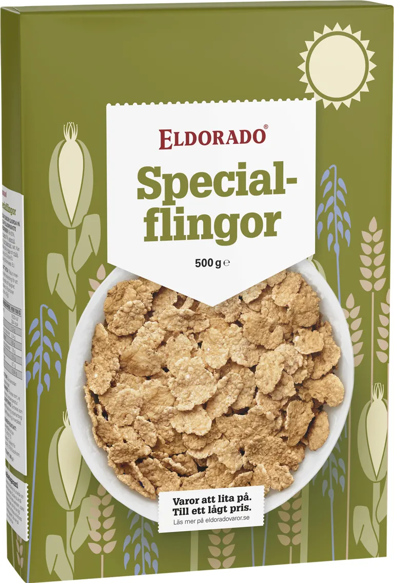 Specialflingor. Spröda flingor gjorda på ris och fullkornsvete. 500 gram.