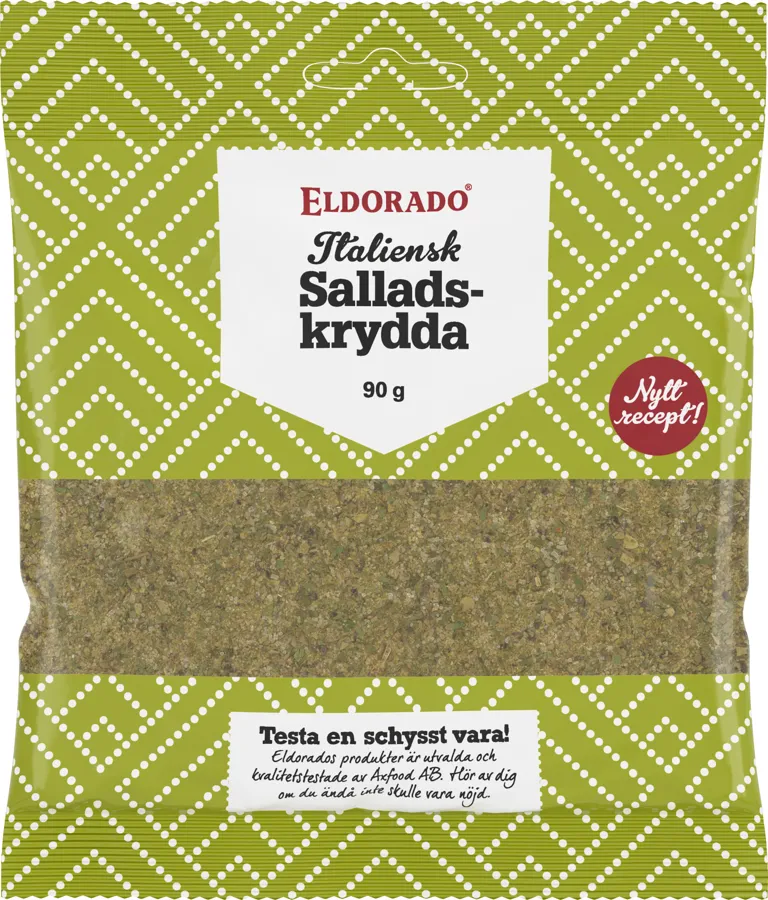 Salt, socker, SENAP, vitlök, svartpeppar, kryddor (mejram, rosmarin, vitpeppar, mynta, cayennepeppar), oregano, basilika, persilja, lök, timjan, surhetsreglerande medel (citronsyra), dragon.