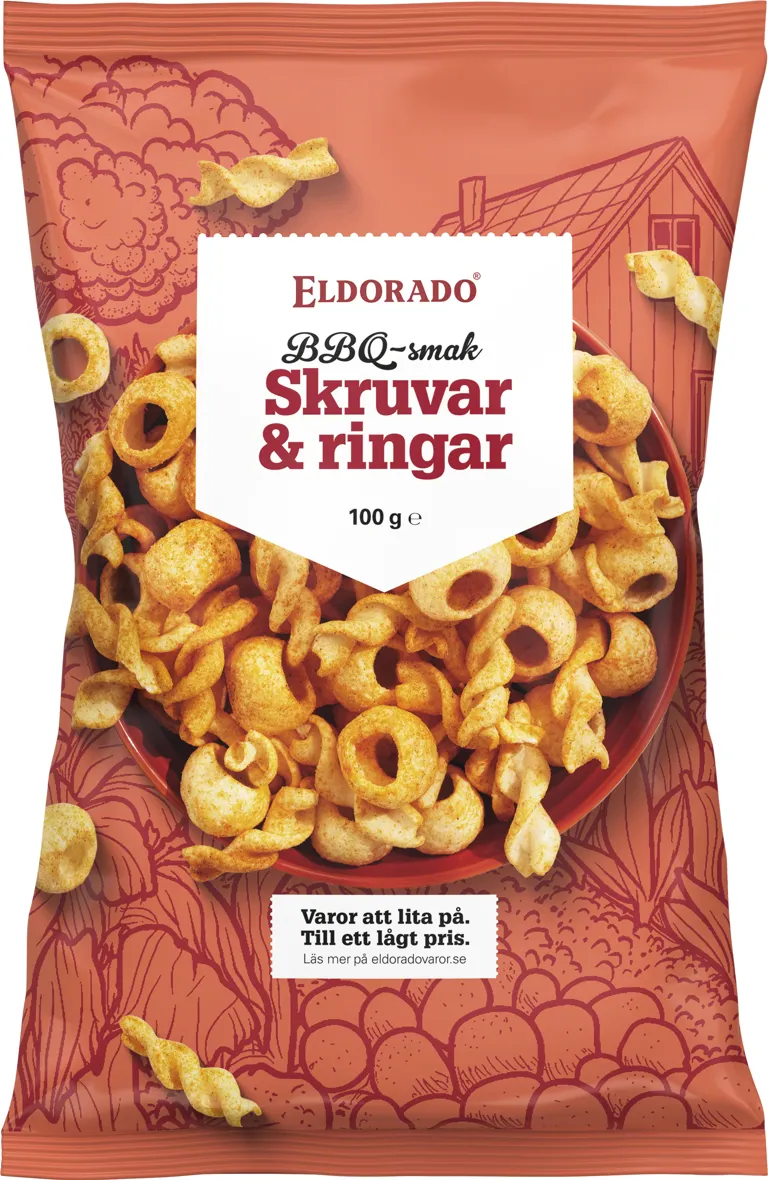 Potatis (stärkelse, granulat, mjöl), solrosolja, majsmjöl, salt, socker, lök, paprika, jästextrakt, surhetsreglerande medel (citronsyra, kaliumklorid), paprikaextrakt, rökt paprika, modifierad potatisstärkelse.