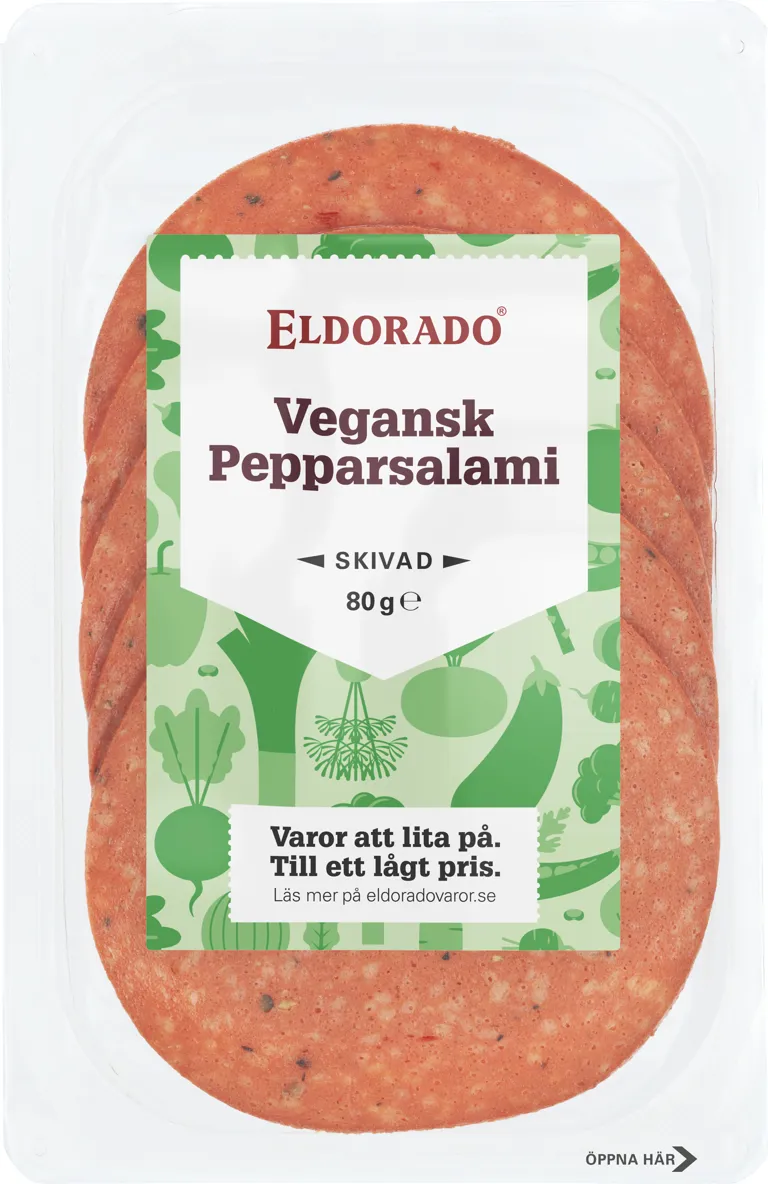 Ingredienser: Vatten, rapsolja, ärtprotein 8%, bondbönsprotein 7%, pepparkorn 2% (svartpeppar, grönpeppar, rosépeppar), modifierad majsstärkelse, linfrö, salt, förtjockningsmedel (E407, E425, E461, E412), extrakt av bockhornsklöver, rödbetsextrakt, naturlig arom, kryddor (paprika, palsternacka), kryddextrakt (paprika, svartpeppar), socker, färgämne (E172, E160C).