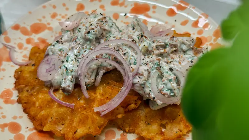 Våfflade potatisbullar med kantarellkräm för ca 19 kr