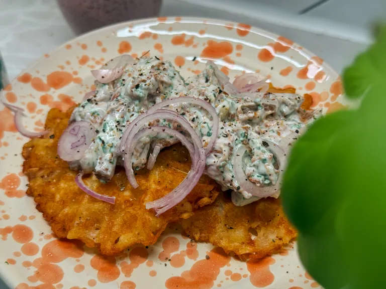 Våfflade potatisbullar med kantarellkräm för ca 19 kr